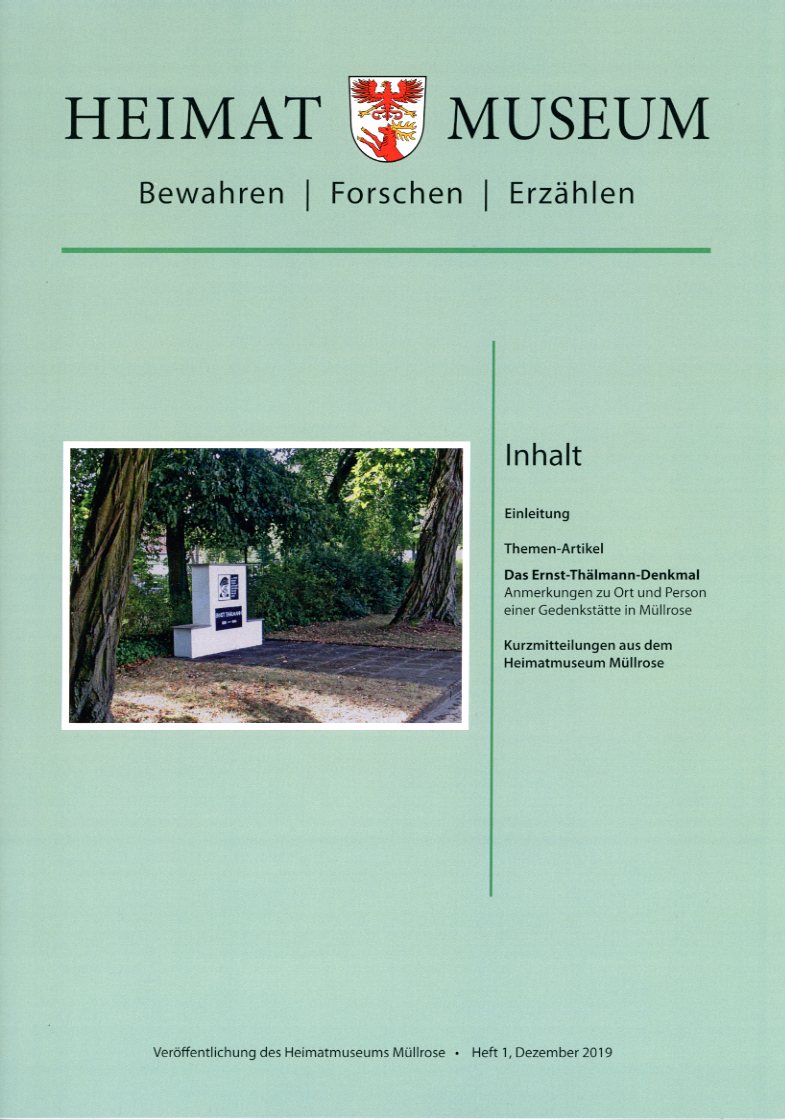 Stadt Müllrose (Hrsg.): Museumsheft HeimatMuseum. Bewahren-Forschen-Erzählen. Heft 1: Das Ernst-Thälmann-Denkmal. Anmerkungen zu Ort und Person einer Gedenkstätte in Müllrose